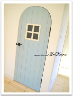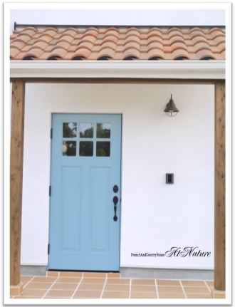 木の玄関ドアに洋瓦♪