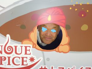 現地に向かう途中、大型さんが見付けられたカレー屋さんでのショットです