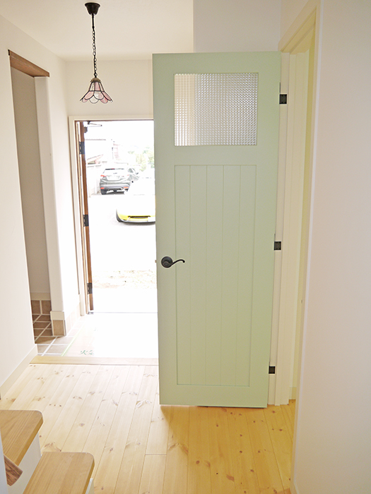 #47 木製の玄関ドアとブルーグレーのスウィングドアがアクセントのナチュラルなお家♪